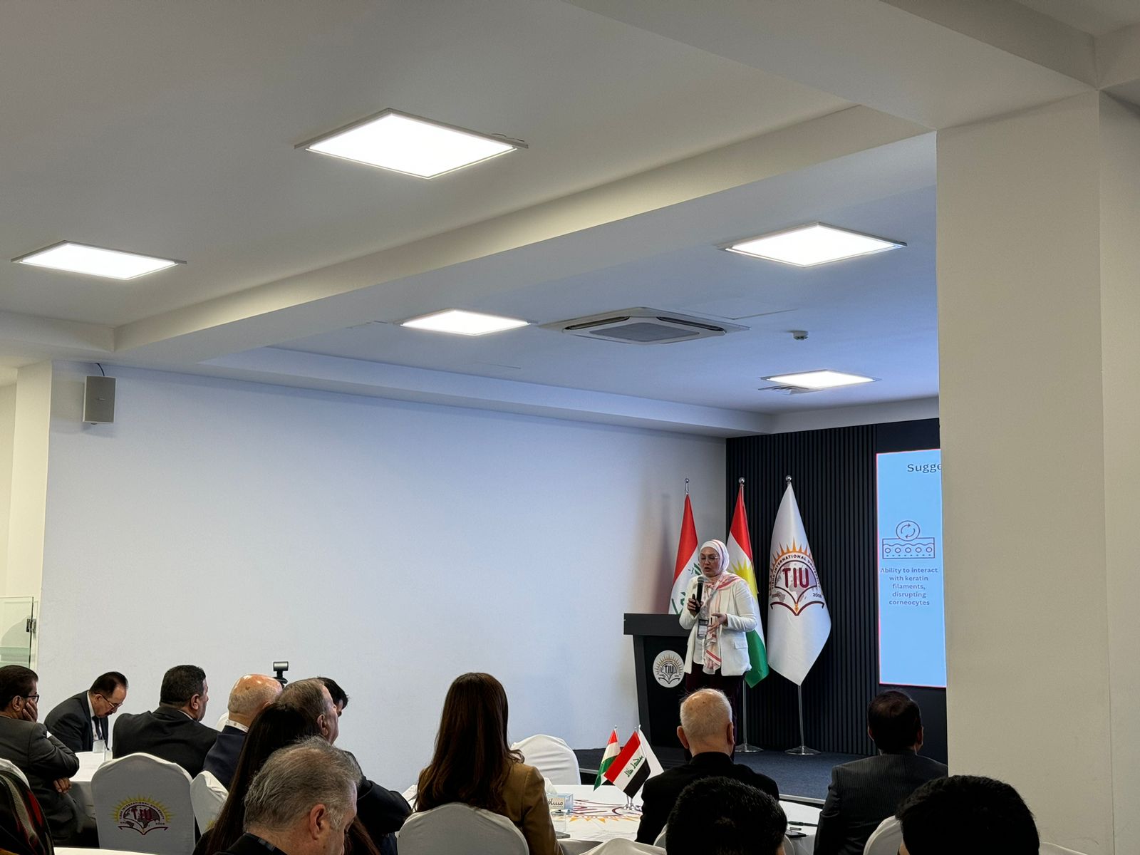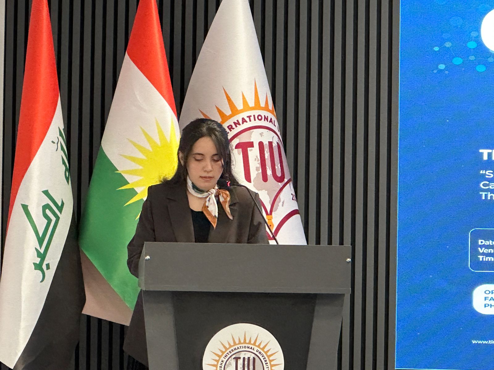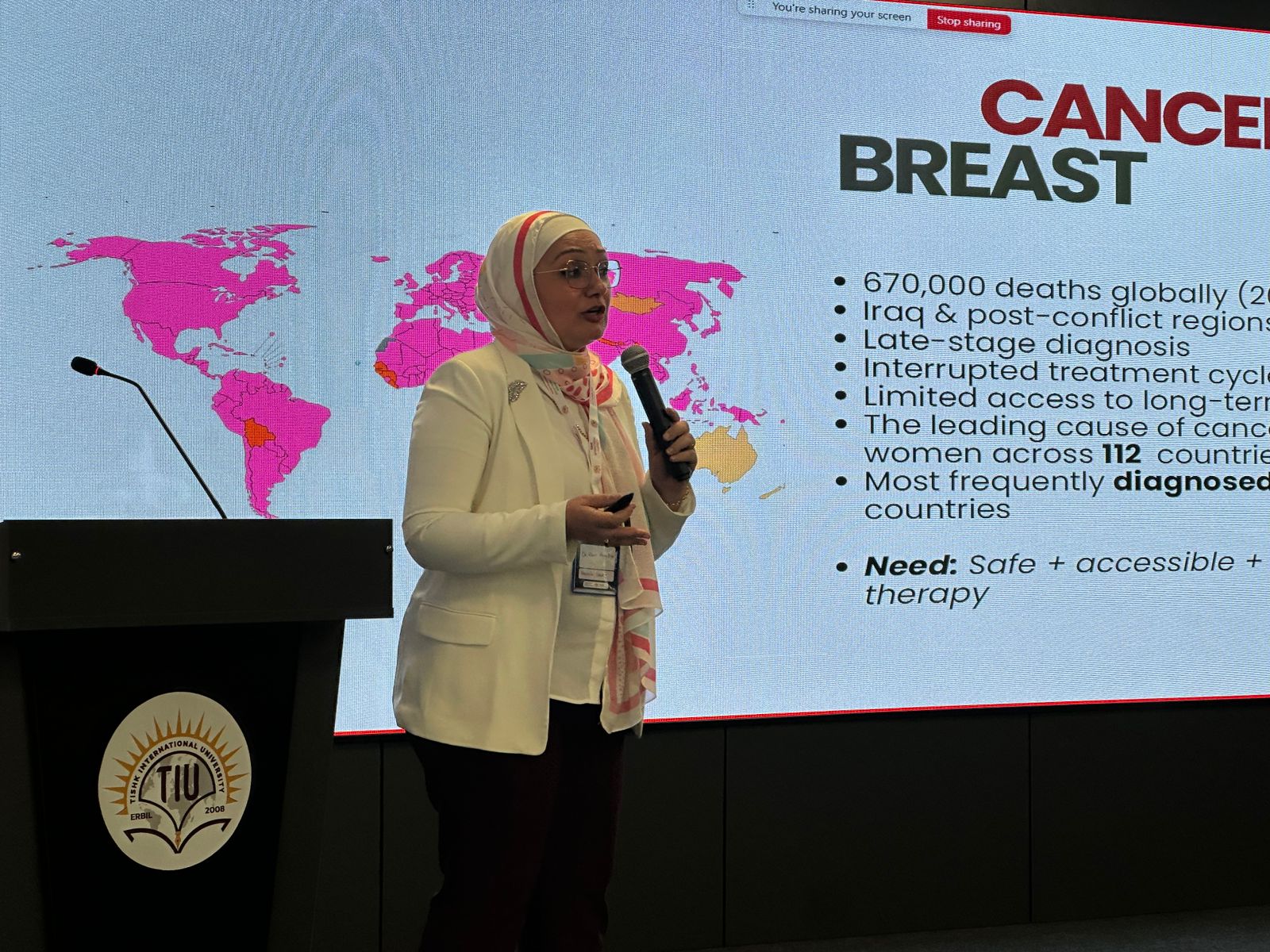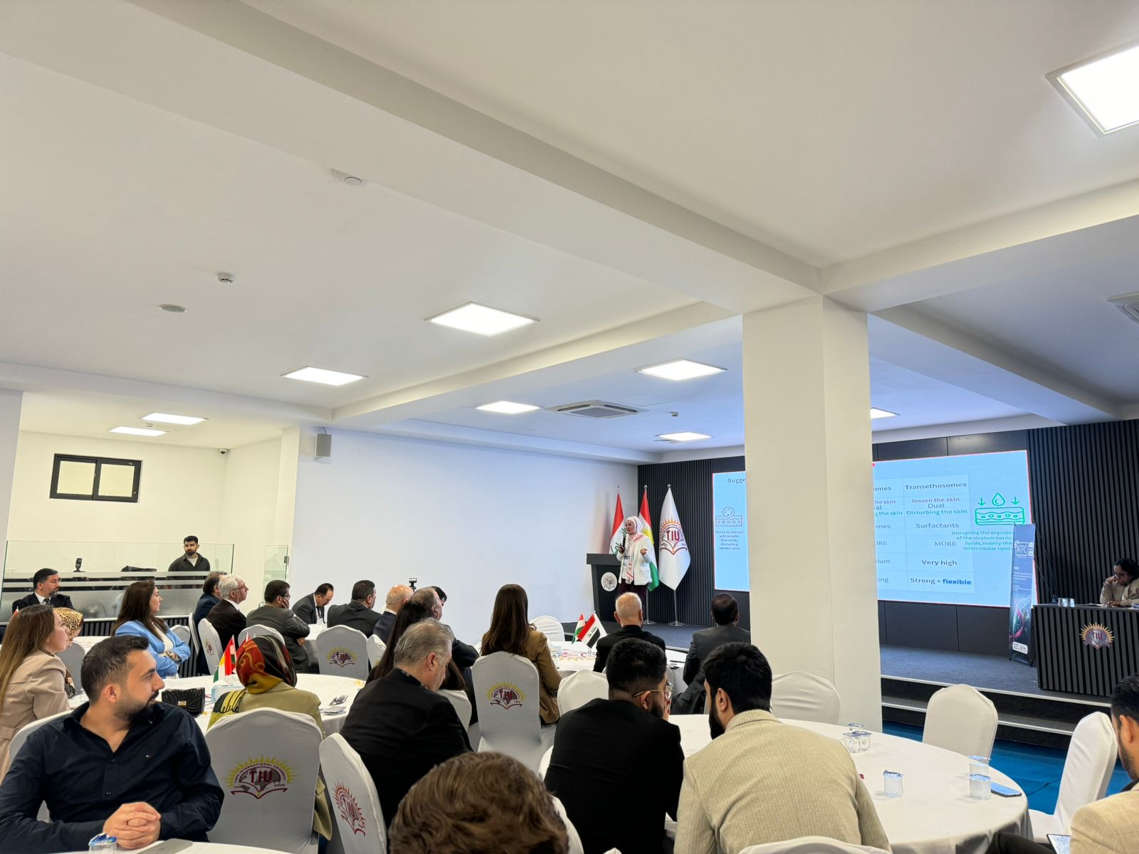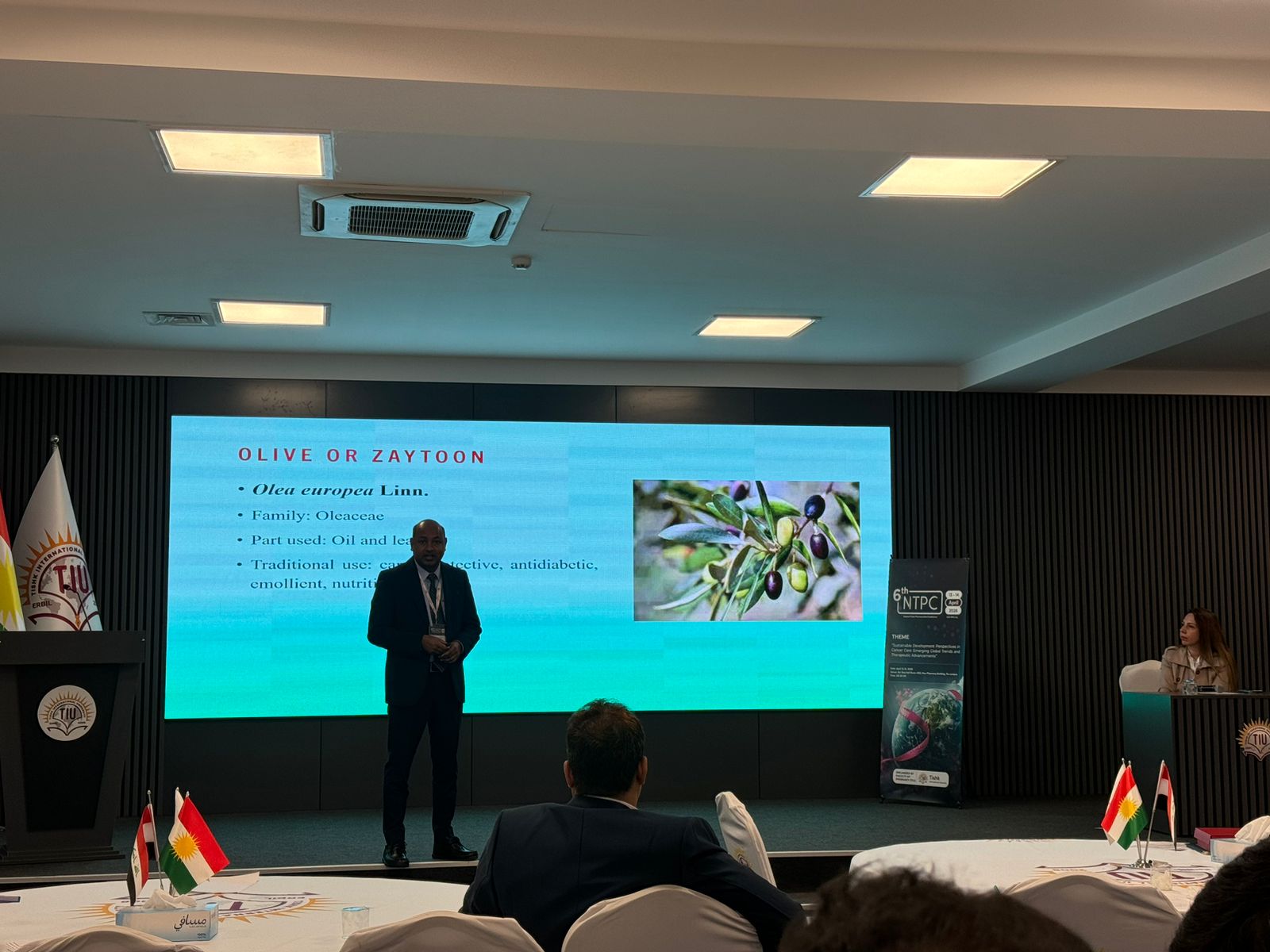 Dr. Shiva hosted the event with a wonderful speech on cancer research. Asst. Prof. Dr. Idris Hadi, Chair of the Board of Trustees, opened the conference with a motivational speech about the university’s extraordinary accomplishments and growth. Following him, Prof. Dr. Sultan Abu-Orabi, President of Tishk International University, welcomed the delegates and expressed gratitude to the organizers for holding such a prominent scientific event. Asst. Prof. Dr. Abdulsamad Salahuddin, Dean of the Faculty of Pharmacy, wrapped up the inaugural session by highlighting the conference’s importance in cancer research, academic collaboration, and sustainable healthcare. The first session featured three keynote speakers. Dr. Reem Abou Assi, gave a fascinating talk titled “Healing Beyond Pills: A Gel-Based Strategy for Breast Cancer Management,” which focused on unique medicine delivery modalities. Assistant Professor Zjwan Mohammed followed her with her presentation, “Papillary Thyroid Carcinoma: From Epidemiological Trends to Molecular and Hematological Biomarkers,” which focused on diagnostic improvements. Dr. Najmaddin Khoshnaw, Assistant Professor, spoke about “Comparative Effects of Vaping and Cigarette Smoking on Hematological Parameters in Young Male University Students,” which raised public health concerns. The second session had four speakers who discussed a variety of cancer care topics. On “Colorectal Cancer Care for the Future,” Dr. Jaafaru Sani discussed epidemiology and long-term therapeutic advances. Assistant Professor Subasini Uthirapathy presented about “Breast Cancer: Pathophysiology, Early Detection, and Modern Treatment Strategies.” Dr. Javed Ahamad, Assistant Professor, lectured on the “Role of Kurdish Ethnomedicinal Plants in Cancer Care,” while Dr. Mohammad Aslam discussed “Theranostic Agents: A Transformative Paradigm in Precision Cancer Diagnosis and Targeted Therapy.” The third session had three speakers who explored natural and innovative medicines. Dr. Ahmad Hamdy spoke about “Investigating Natural Compounds from Agarwood for Cancer Activity.” Dr. Peshawa Shafiq, Assistant Professor, spoke about “The Anticancer Secret of Kurdish Wildflowers: A Phytochemical Journey through Anchusa Species.” The sessions concluded with Assistant Lecturer Dr. Rojan Arif discussing “Liposomal Delivery Systems in Cancer Therapy.”