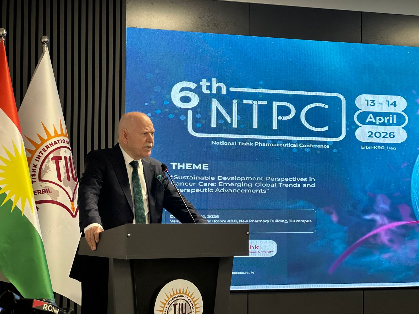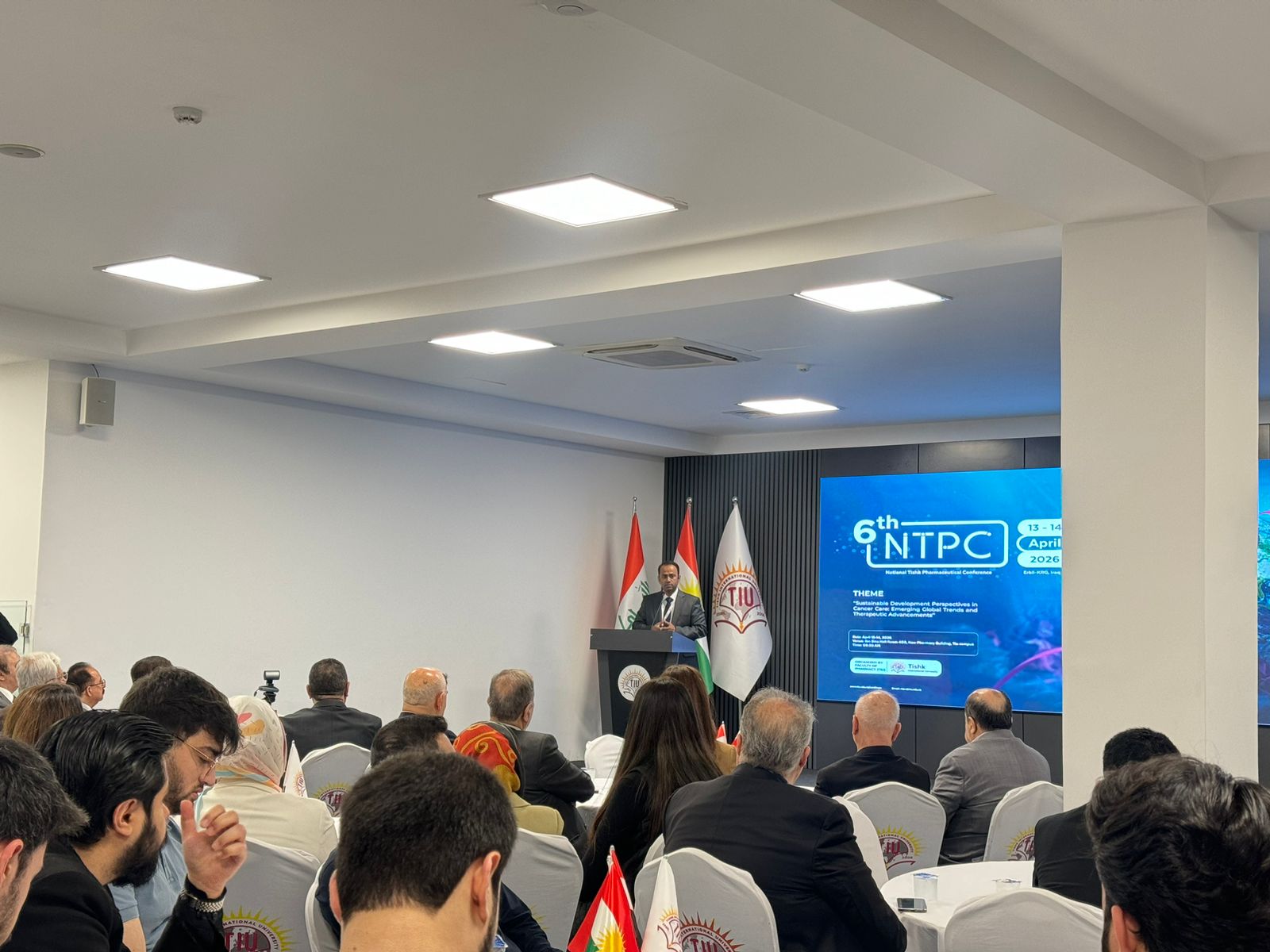 On 13-14 April 2026, Faculty of Pharmacy at Tishk International University’s conducted the 6th National Tishk Pharmaceutical Conference (NTPC), with the theme: “Cancer Sustainable Development Perspectives: Emerging Global Trends and Therapeutic Advancements”, and sponsored by Mass Group Holdings and Charazati Sherko.
