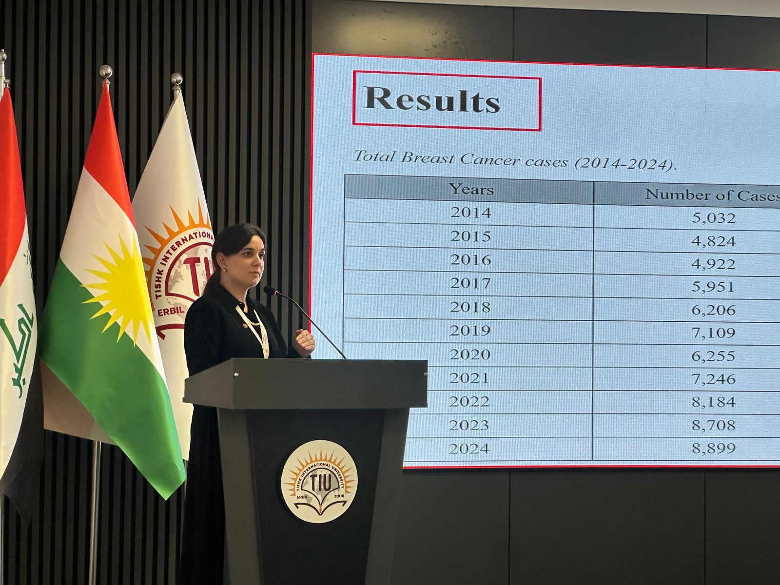 The first day concluded with three outstanding statements in the fourth session. Assistant Lecturer Dr. Dania Awni investigated “Genomic Profiling of Gastric Adenocarcinoma” in Kurdistan, looking for indications such as XRCC1, IL-8, and Bcl-2. Dr. Shajwan Salar, Assistant Lecturer, gave a presentation titled “Breast Cancer in Young Women Under 40: 10 Years of Insights from Iraqi Secondary Data.” Finally, Assistant Lecturer Dr. Alaa Amer spoke about “Cytokeratin as Serum Tumor Markers in Ovarian Cancer.” The first day of the conference demonstrated a strong dedication to cancer research and sustainable and innovative healthcare solutions, establishing a high standard for the second day.