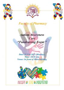 You are cordially invited to the Autism Awareness Fundraising Event, organized by the Faculty of Pharmacy at Tishk International University.