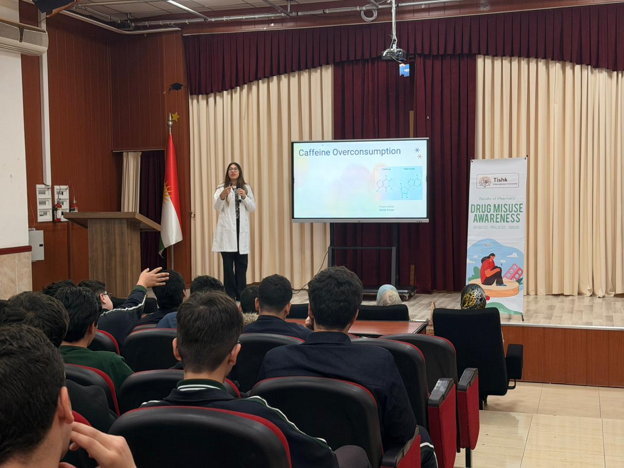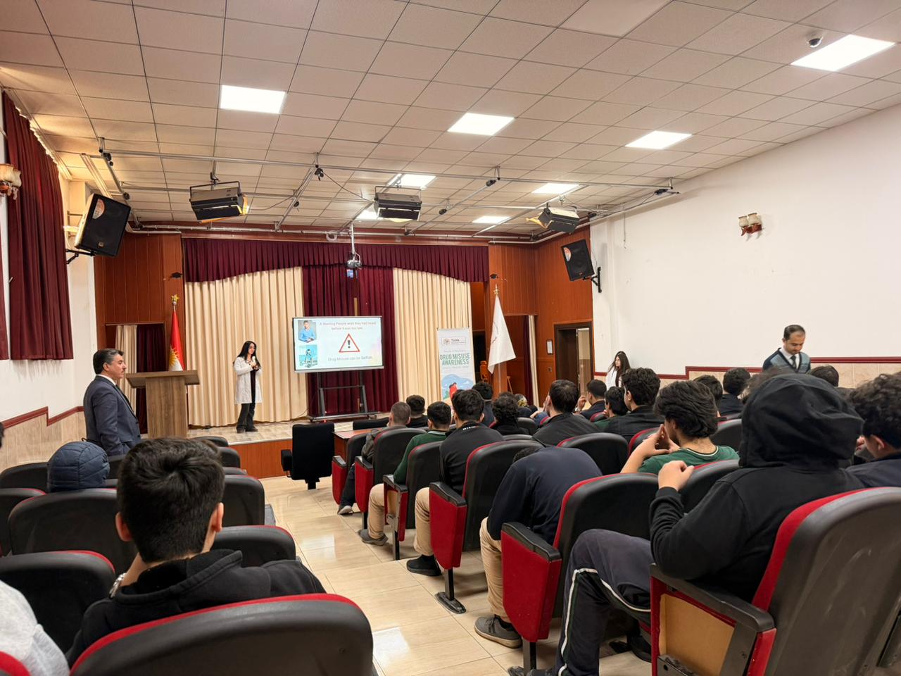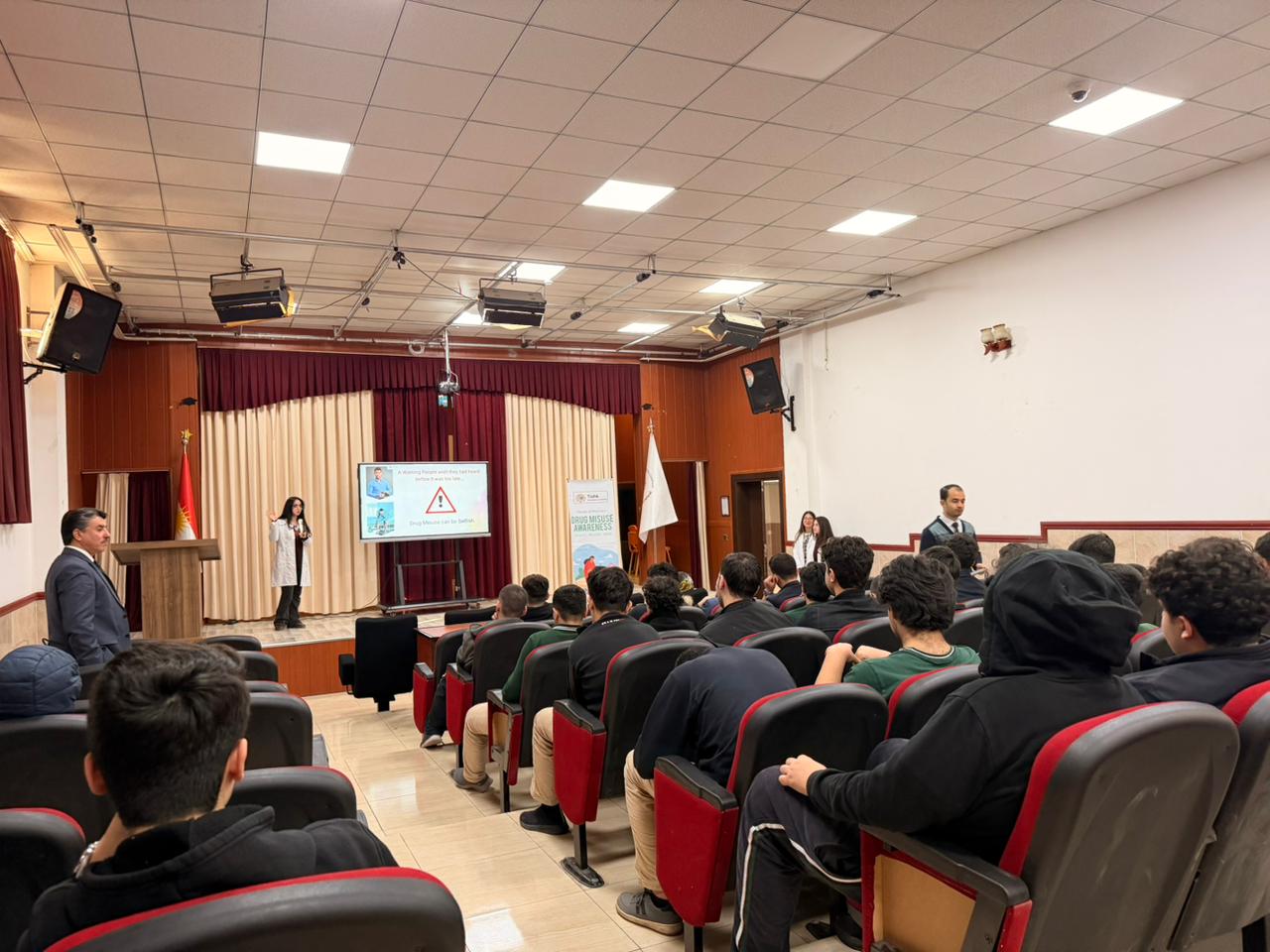 On the 17th of February, an educational outreach visit to Ishik Boys High School was conducted as part of an ongoing community service project aimed at raising awareness about the dangers of drug misuse and abuse among adolescents. The visit was meticulously organized and supervised by research assistants Dr. Aya Diyar, Dr. Shagull Sameea, and Dr. Daniah Issa, in collaboration with Dr. Serdar Deyan (DOS representative), all of whom played vital roles in the planning and execution of the event. During the session, pharmacy students Bahra Kadhem, Bana Saoud, and Malak Aws delivered comprehensive presentations focusing on the misuse of commonly encountered substances, specifically antibiotics, caffeine, and nicotine. Each student addressed the risks, health consequences, and misconceptions associated with the improper use of these drugs. Their presentations were designed to be interactive and engaging, encouraging students to reflect on their own experiences and to ask questions freely. The event also featured a dynamic Q&A session, providing high school students with the opportunity to voice their concerns, clarify doubts, and seek advice directly from those studying in the field of pharmacy. This open dialogue fostered a supportive learning environment and helped bridge the gap between university students and the younger generation. To further encourage participation and demonstrate appreciation for the students’ engagement, small gifts were distributed to all attendees at the conclusion of the session. The positive response from the students and staff at Ishik Boys High School highlighted the impact and importance of such community-based initiatives. This project was made possible through the generous support and guidance of Asst. Prof. Dr. Mohammed Javed Naim, Head of the Pharmacy Department, and Asst. Prof. Dr. Abdulsamad Salahuddin, Dean of the Faculty of Pharmacy. Their leadership and commitment to community health were instrumental in bringing this meaningful educational event to fruition. The pharmacy students and organizers hope to continue such collaborations in the future, striving to educate and empower young individuals to make informed decisions regarding their health and well-being.